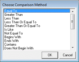 The comparison method will allow you to select specific or a range of segment information. Select 'Equal To' and click 'OK'.