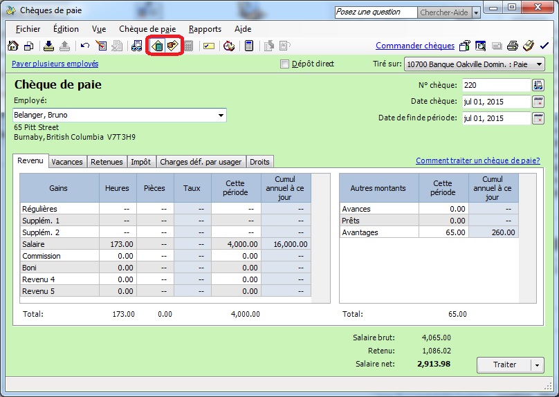 - Pour vérifier si cette icône est sélectionnée, cliquez sur Chèque de paie depuis la page principale.