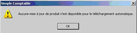Note: Si aucune mise a jour n'est disponible, le message suivant s'affiche :