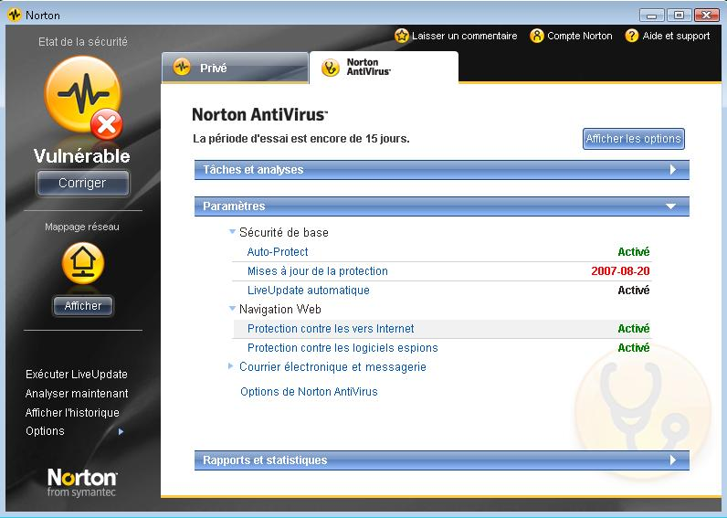 - Cliquez sur l’onglet Norton Antivirus.