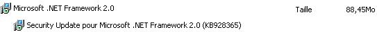 Note : vous pouvez vous connecter sur le site de Microsoft pour vérifier le contenu de ces mises à jour (numéros KB). La problématique provient d'une mise à jour de Microsoft .NET Framework 2.0 comme la KB928365 par exemple.